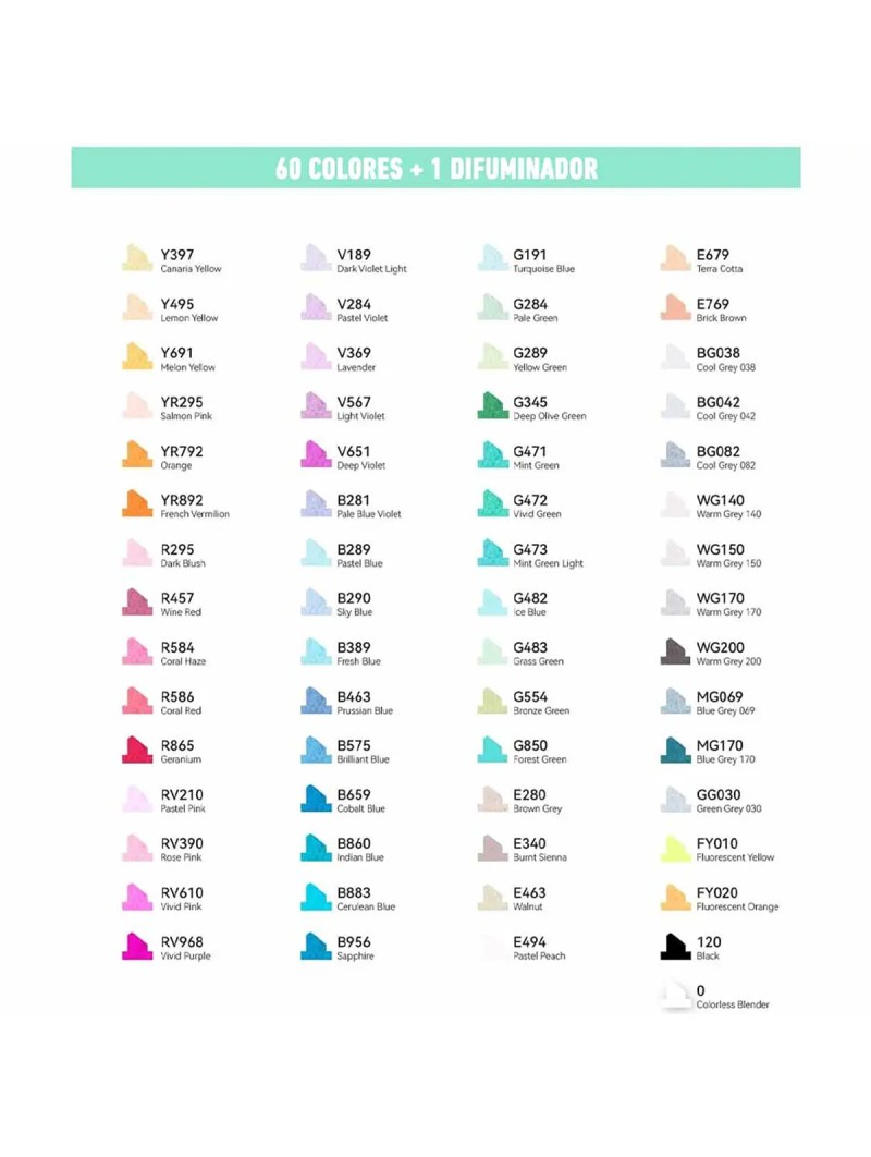 - Cantidad: 60 colores + 1 blender.