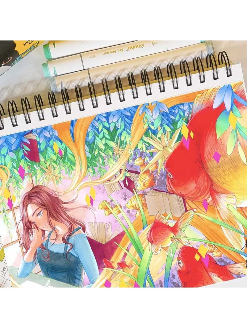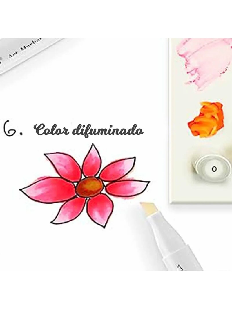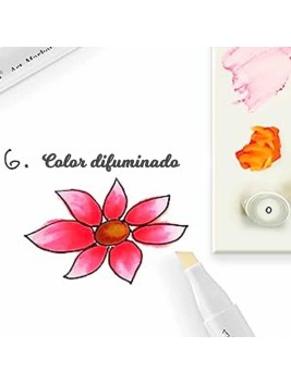 Incluye un blender para degradados suaves, un estuche portátil de color negro, un muestrario de colores y una lámina protectora. Las tapas codificadas facilitan la selección de tonos. Ideal para bocetos, ilustraciones y diseño.
