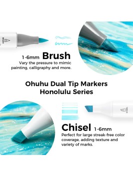 La tinta a base de alcohol es de secado rápido, resistente al agua y garantiza mezclas suaves sin manchas, manteniendo los colores vibrantes. Las tapas codificadas por colores facilitan su organización y previenen el secado. Perfecto para artistas de todos los niveles, incluye un práctico estuche portátil.