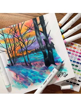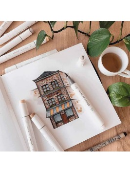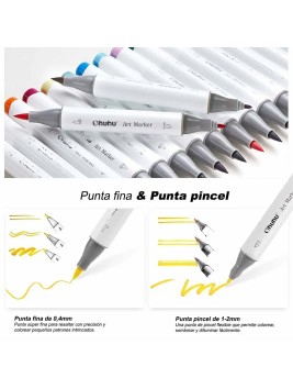 Cada marcador tiene tapa codificada por color para fácil identificación. Incluye un blender incoloro para mezclar tonos y una lámina protectora que evita que la tinta traspase el papel. Perfecto para ilustradores, diseñadores y amantes del arte que buscan versatilidad y calidad profesional.