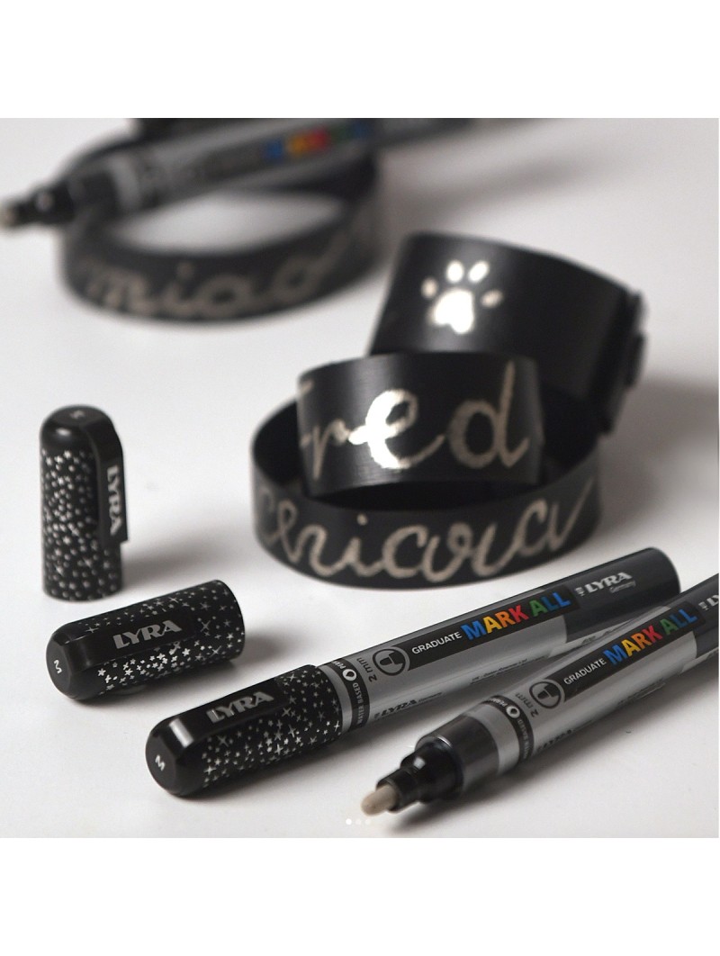 La tinta metálica especial a base de agua es inodora y no se filtra a través del papel.
