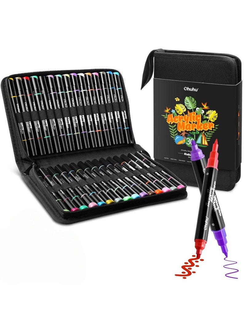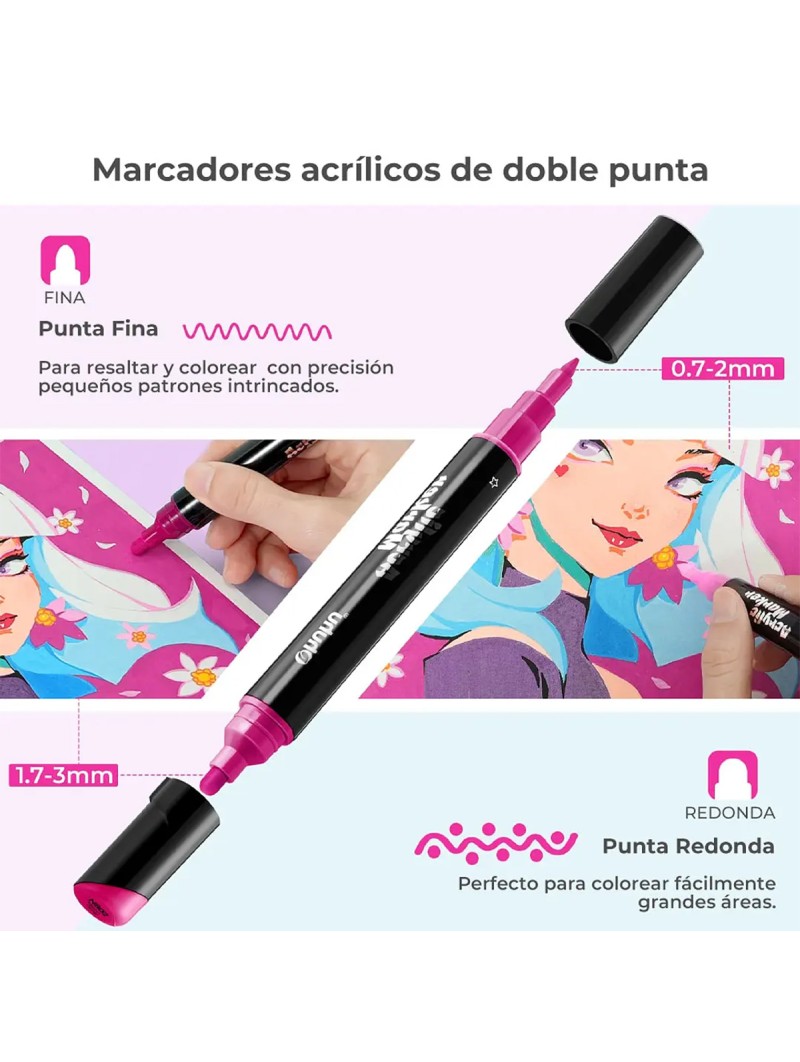 Los Marcadores Acrílicos Kakaako de Ohuhu te permiten realizar gran variedad de creaciones artísticas gracias a su doble punta. Con la punta redonda puedes rellenar grandes franjas de color y con la punta fina puedes hacer detalles delicados, como delinear y embellecer.