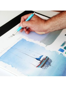 Papel de acuarela de color blanco natural adecuado para acuarela y gouache. Su superficie tiene una textura de grano grueso y un espesor de 300gr, lo que lo hace muy resistente.