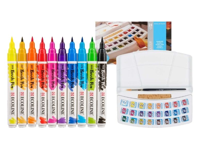 - Marcadores Brush Pen de Ecoline. Con estos marcadores lograrás fusionar tonos de una manera orgánica y con un acabado muy natural, que permite terminaciones visualmente llamativas. Puedes ir mezclando los tonos con un pincel y agua.