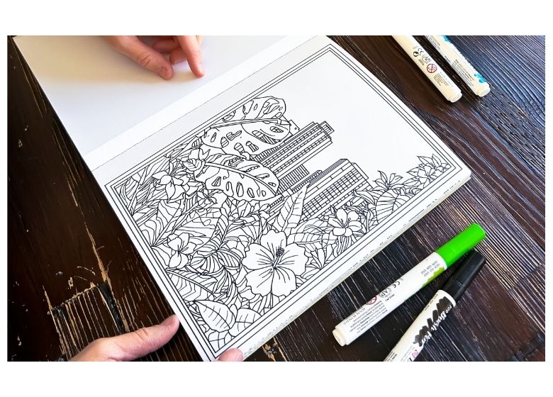 El proceso consistió en seleccionar y redibujar distintas escenas urbanas, cuidando los contornos y el equilibrio de las composiciones para que funcionaran bien como páginas para colorear. La idea fue crear un libro que fuera tanto una experiencia creativa como un objeto visualmente cuidado.