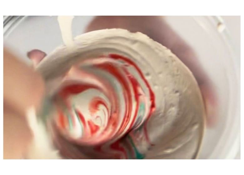 Preparo la “pasta maestra” y la mezclo con acrílicos hasta lograr los colores deseados. Luego la coloco en mangas de repostería para mayor precisión.