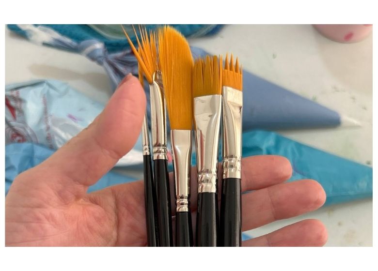 - Pinceles: Son muy versátiles. Los uso para pintar fondos, aplicar gesso y trabajar detalles en la etapa de color. También los utilizo para aplicar la pasta, dependiendo del diseño. Permiten hacer degradés suaves, unificar superficies y trabajar técnicas como pincel seco para dar profundidad.