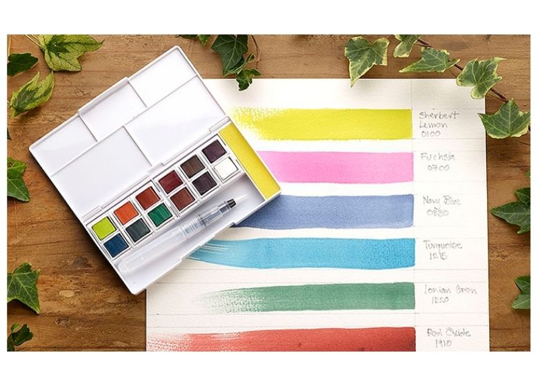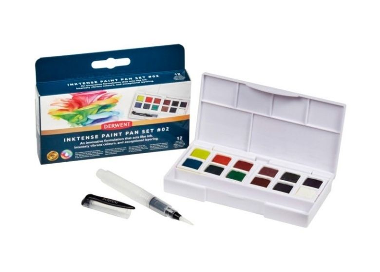 Una vez secas, las capas permanecen estables y no se reactivan con el agua, permitiendo trabajar encima con más pintura, lápices Inktense, bloques o rotuladores delineadores. Son permanentes, intensas y adecuadas tanto para el estudio como para pintar al aire libre, gracias a sus prácticos estuches de viaje.