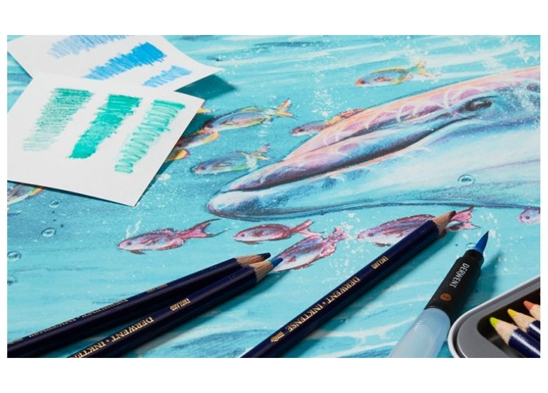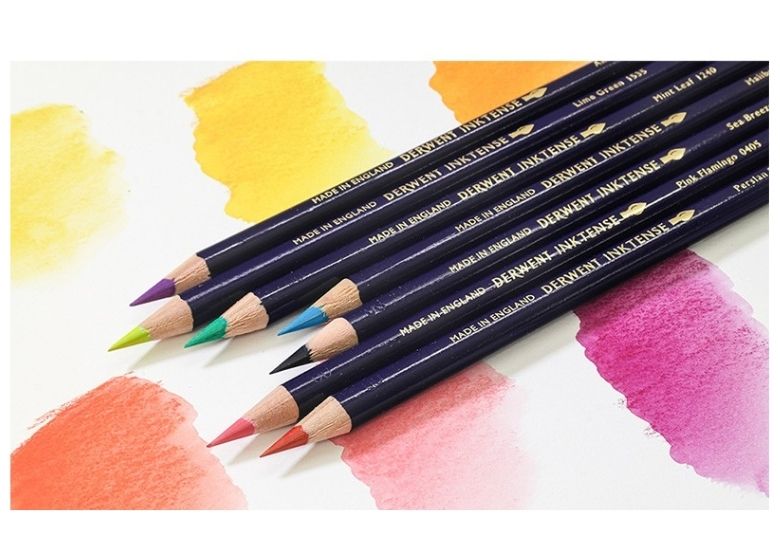 La línea Derwent Inktense está disponible en 100 colores, ofreciendo una paleta amplia y expresiva.