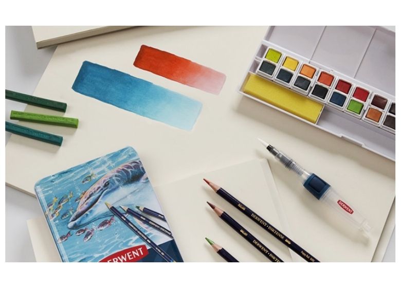 Derwent Inktense es una innovadora gama de materiales artísticos que redefine el concepto del color acuarelable. Gracias a su formulación exclusiva con efecto tinta, los pigmentos se activan con agua, alcanzan una intensidad excepcional y, una vez secos, quedan permanentes, permitiendo superponer capas sin reactivar ni disolver el color anterior.