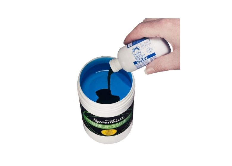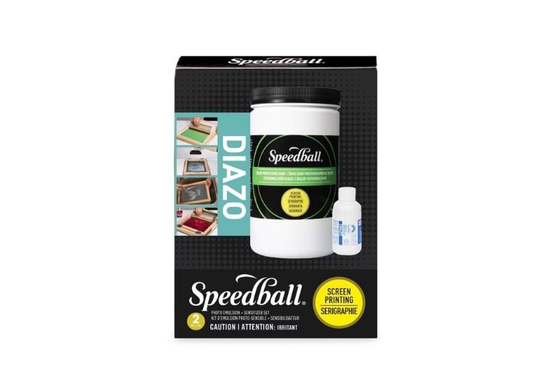 La línea Diazo de Speedball está formada por una emulsión fotosensible que, al mezclarse con un sensibilizador Diazo, se vuelve reactiva a la luz. Esta emulsión se aplica sobre una pantalla de serigrafía y, tras un proceso de exposición, permite crear esténciles con detalles muy finos e incluso imágenes fotográficas.