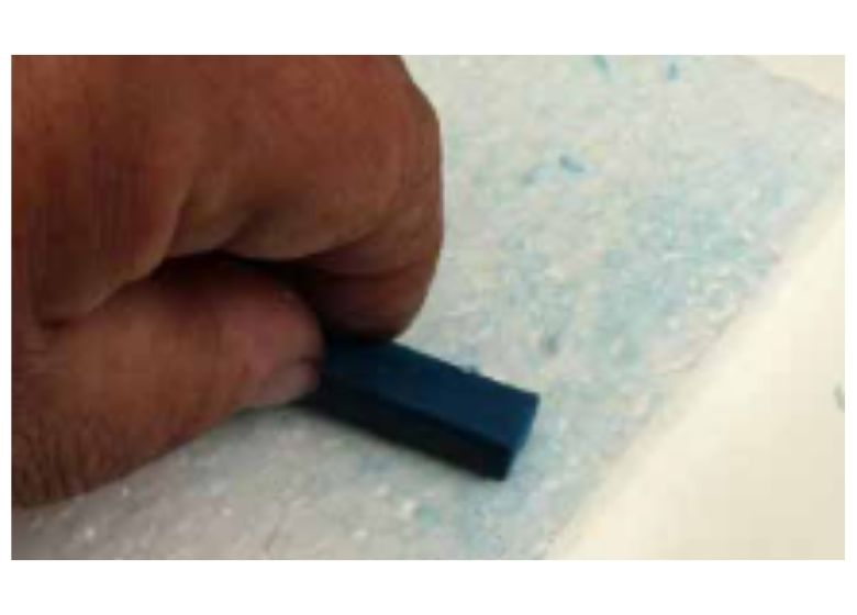 Primero decidí crear un fondo con textura, así que utilicé un trozo de embalaje de poliestireno que resultó perfecto para este propósito. Usando el lado largo del bloque turquesa, lo froté sobre el poliestireno, dejando una buena capa de pigmento que luego pincelé con agua.