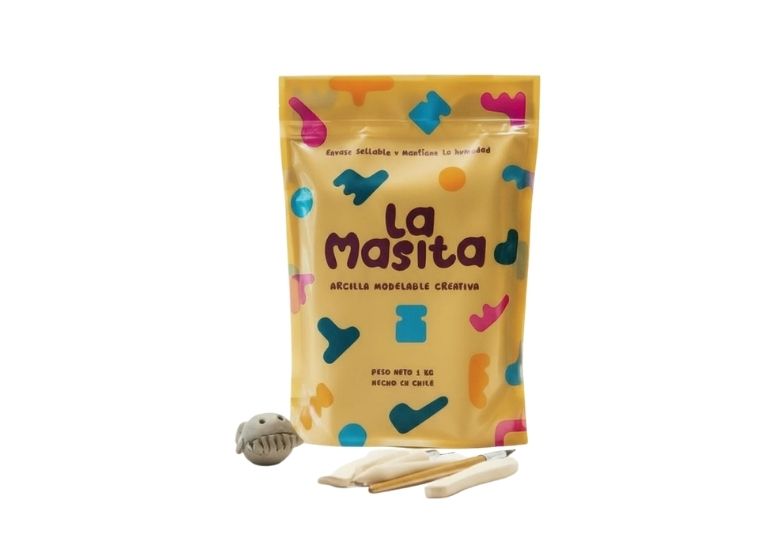 La Masita es una arcilla modelable de secado al aire, presentada en un práctico envase sellable de 1 kilo, diseñado para mantener la humedad por más tiempo. Esto te permite trabajar a tu propio ritmo, sin apuros y sin que el material se seque antes de terminar tu idea.