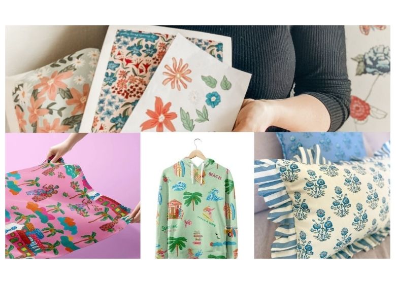 8. Imprimir en tela: Con una impresora especializada, puedes estampar tu diseño en tela, papel mural, accesorios o productos de moda. Hay impresoras domésticas para sublimación o puedes externalizar el servicio.