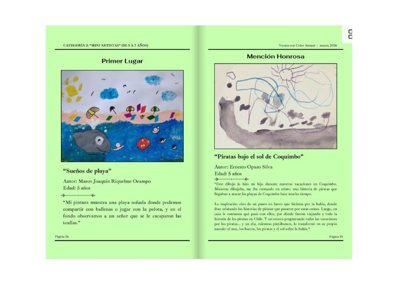 Esta primera edición del concurso dio origen a una revista especial, concebida como un espacio para visibilizar y celebrar el talento de estos pequeños grandes artistas. El volumen recopila una amplia selección de obras, transformándose en un registro tangible de esta experiencia creativa colectiva.