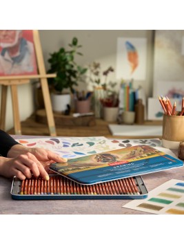 Lápices suaves y cremosos ideales para dibujos de vida silvestre, estudios de la naturaleza y retratos. La textura cremosa que dan estos lápices a base de cera dan a tus dibujos un acabado aterciopelado único 100% resistente al cambio de color hasta por 100 años.
