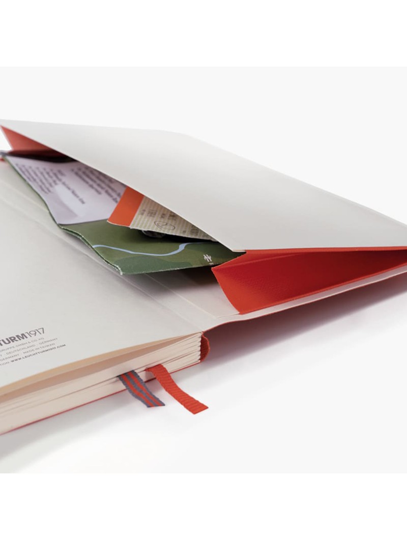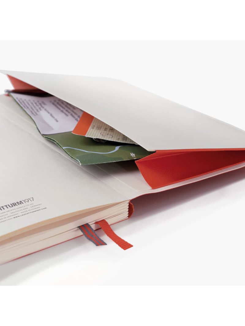 Con 123 páginas numeradas y papel de 80 g/m², es perfecto para tomar notas, planificar o escribir en movimiento. Incluye índice, bolsillo interior expandible, dos cintas marcadoras y cierre elástico, todo con el diseño funcional característico de Leuchtturm1917.