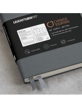 Su tapa dura en tono antracita transmite sobriedad y profundidad, mientras que el grabado en cobre “CHANGE JOURNAL” le da un toque de distinción que inspira desde el primer vistazo.