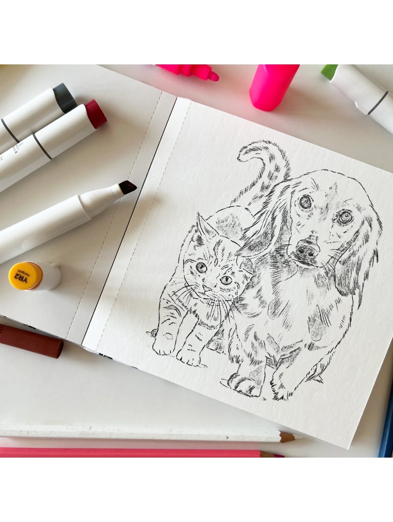 Cada página está prepicada, lista para transformar tus obras maestras en postales llenas de color o en arte digno de enmarcar. Usa tu imaginación y explora técnicas como lápices de colores, plumones, acrílicos o acuarela (¡sin empapar demasiado!) para dar vida a dibujos llenos de ideas divertidas y creativas que invitan a todos a identificarse.