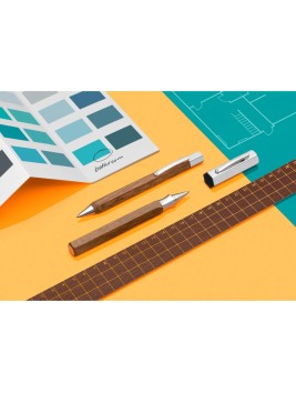 El Bolígrafo Ondoro de madera de roble ahumado combina diseño moderno con materiales nobles. Su cuerpo hexagonal de roble ofrece un aspecto único y sofisticado, enmarcado con piezas de metal cromado de alta calidad que aportan durabilidad y estilo.
